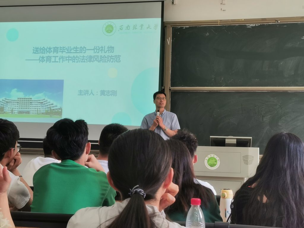 主题讲座,奏响安全离校“护航曲”。为确保全体毕业生能安全有序地毕业离校,黄志刚老师代表公司为毕业生开展了题为“送给毕业生的一份礼物–体育工作中的法律风险防范”的专题讲座,强调安全是健康之本、和谐之需,叮嘱同学们在毕业离校期间加强和谐稳定的安全意识,确保安全离校。并激励全体毕业生在新的学习工作岗位上书写辉煌,再创佳绩。