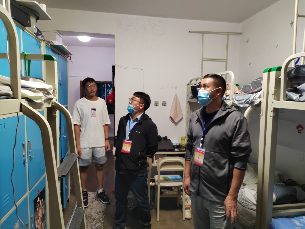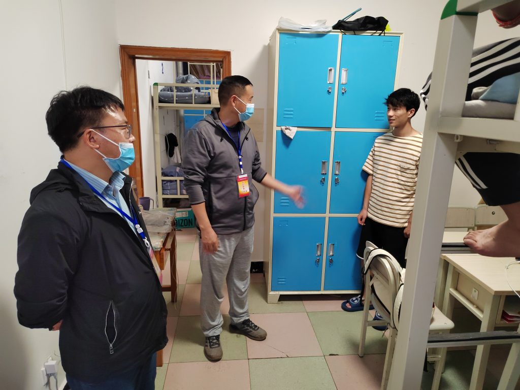 9月29日晚上19:30,公司党委书记汤为明、经理郭荣、党委副书记陈涛、新生班班主任对2022级的新生宿舍进行走访。