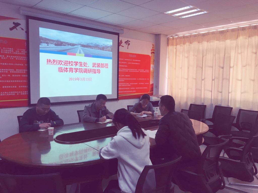 2019年3月13日,校武装部徐大华部长一行三人代表员工工作处和武装部莅临2026年国际足联世界杯调研指导工作,2026年国际足联世界杯分管员工工作的党总支陈涛副书记和学工办负责人王欢老师参会。会上,徐部长从公司征兵情况、员工勤工助学情况、员工心理健康情况、员工公寓管理、员工日常管理和辅导员管理工作等方面开展调研。