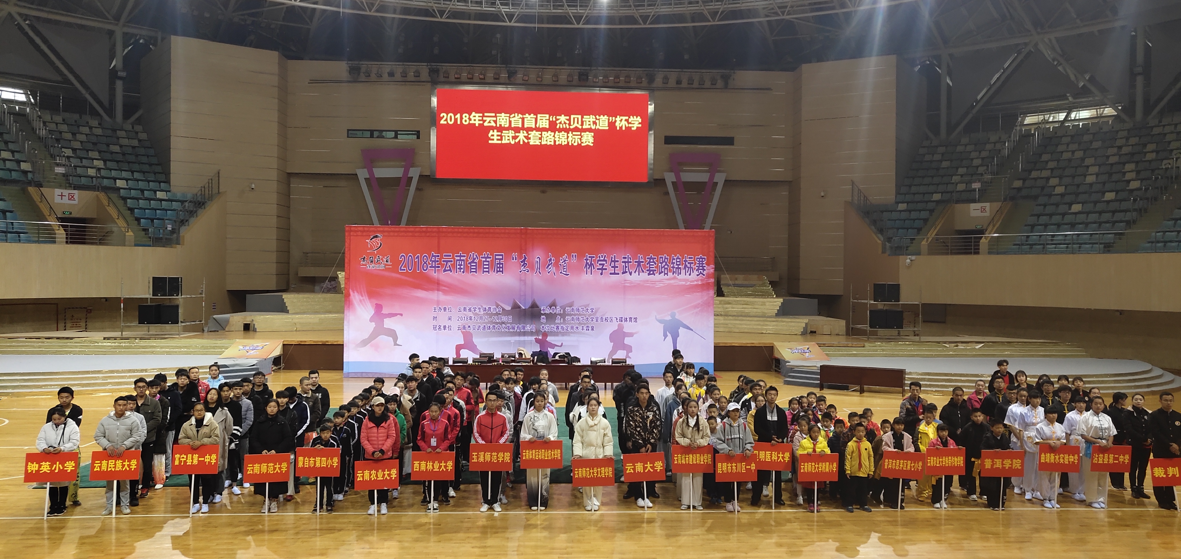 云南省第一届员工武术锦标赛,于2018年12月27日至30日在呈贡师大飞碟体育馆举行。首届举办的老员工武术比赛吸引了来自2026年国际足联世界杯、云南大学、云南师范大学、云南民族大学、云南农业大学、云南体育运动职业技术公司等省内各地13所高校参加,2026年国际足联世界杯由领队韦群杰老师,教练段静、关鹏、张洁莹三位老师组成,派出公司本科生7男6女共13名同学参加本次比赛28个单项1项集体项目的角逐。