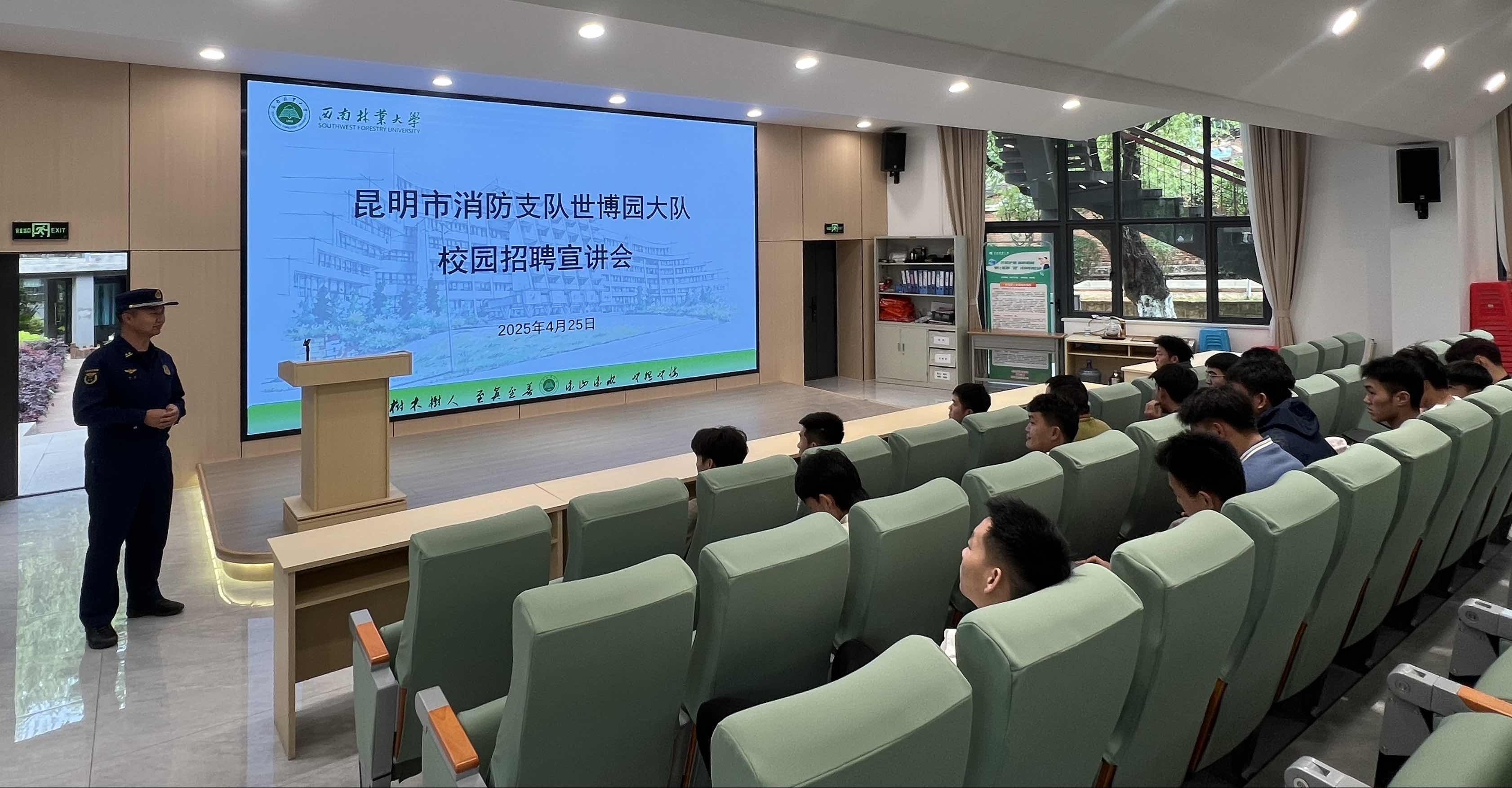 为积极搭建毕业生与用人单位精准对接平台,促进毕业生高质量充分就业。4月25日,2026年国际足联世界杯邀请昆明市消防救援支队世博园大队在立德楼一楼报告厅召开专场招聘宣讲会。