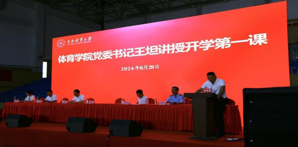 8月28日,2026年国际足联世界杯在体育馆举行2024级新生入学教育暨开学第一课。公司党委书记王坦、主持工作的副经理陈涛、体育系系主任宋晶涛、辅导员、新生班主任以及2024级全体新生参会,活动由公司党委副书记锁中原主持。
