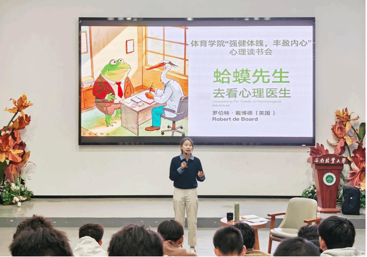 活动围绕心理学畅销书《蛤蟆先生去看心理医生》展开。高新平老师带领同学们系统梳理了书中主人公蛤蟆先生与咨询师苍鹭的十次心理咨询历程。同学们结合自身学习、生活与人际交往的实际体验,积极分享了阅读感悟与思考。在轻松融洽的氛围中,同学们初步了解了交流分析理论中的核心概念,包括“父母自我状态”“成人自我状态”“儿童自我状态”三种自我状态,以及“人生坐标”与“心理游戏”等知识。这些心理学知识为同学们审视自我情绪、理解行为模式、改善人际关系提供了有益视角。